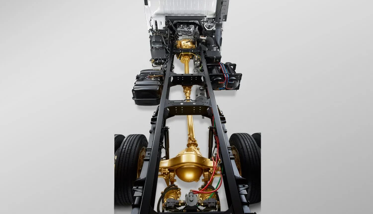 One-time press formed by a 6,000 tonne pressing machine, matched with a large-tonne front and rear axles and reinforced longitudinal beam have established superior loading.